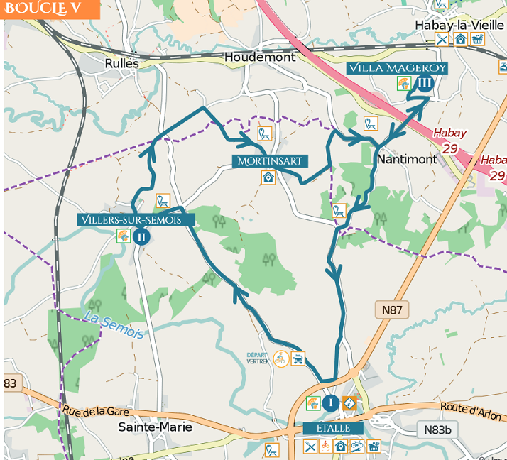 Langsheen dit parcours, ontdek je Etalle en zijn Gallo-romeinse stopplaats, de kerk van Villers-sur-Semois met zijn oude Gallo-romeinse steen daterend van de 2de en 3de Eeuw. Duik mee in het verre verleden van onze voorouders in de villa van mageroy en zijn vestingen van voorheen.